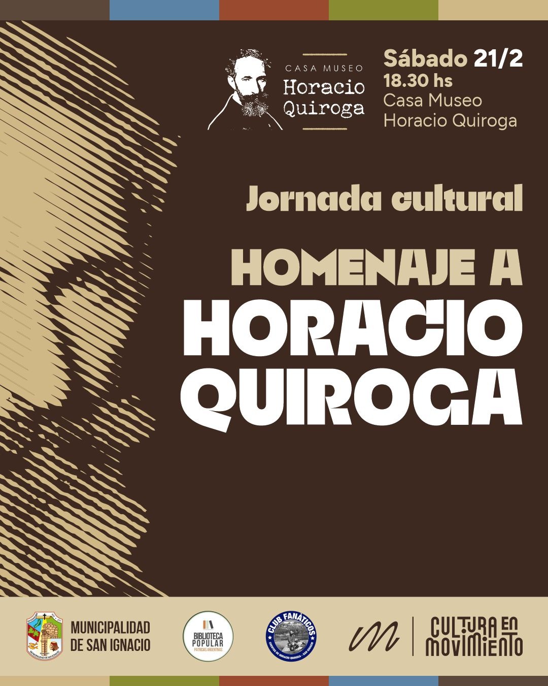 El sábado 21 de febrero, en el marco del III Encuentro Cultural Verano 2026, se realizará el "Homenaje a Horacio Quiroga”, que convocan anualmente su “Club de Fanáticos” y la Biblioteca Patricias Argentinas de San Ignacio. La Municipalidad local se suma a la Secretaría de Estado de Cultura de la Provincia, para llevar adelante esta jornada, que agrupa a los amantes de las artes y especialmente las letras de la tierra misionera. La cita cultural se realizará a partir de las 18.30 hs con entrada libre y gratuita, en la casa museo del escritor uruguayo.