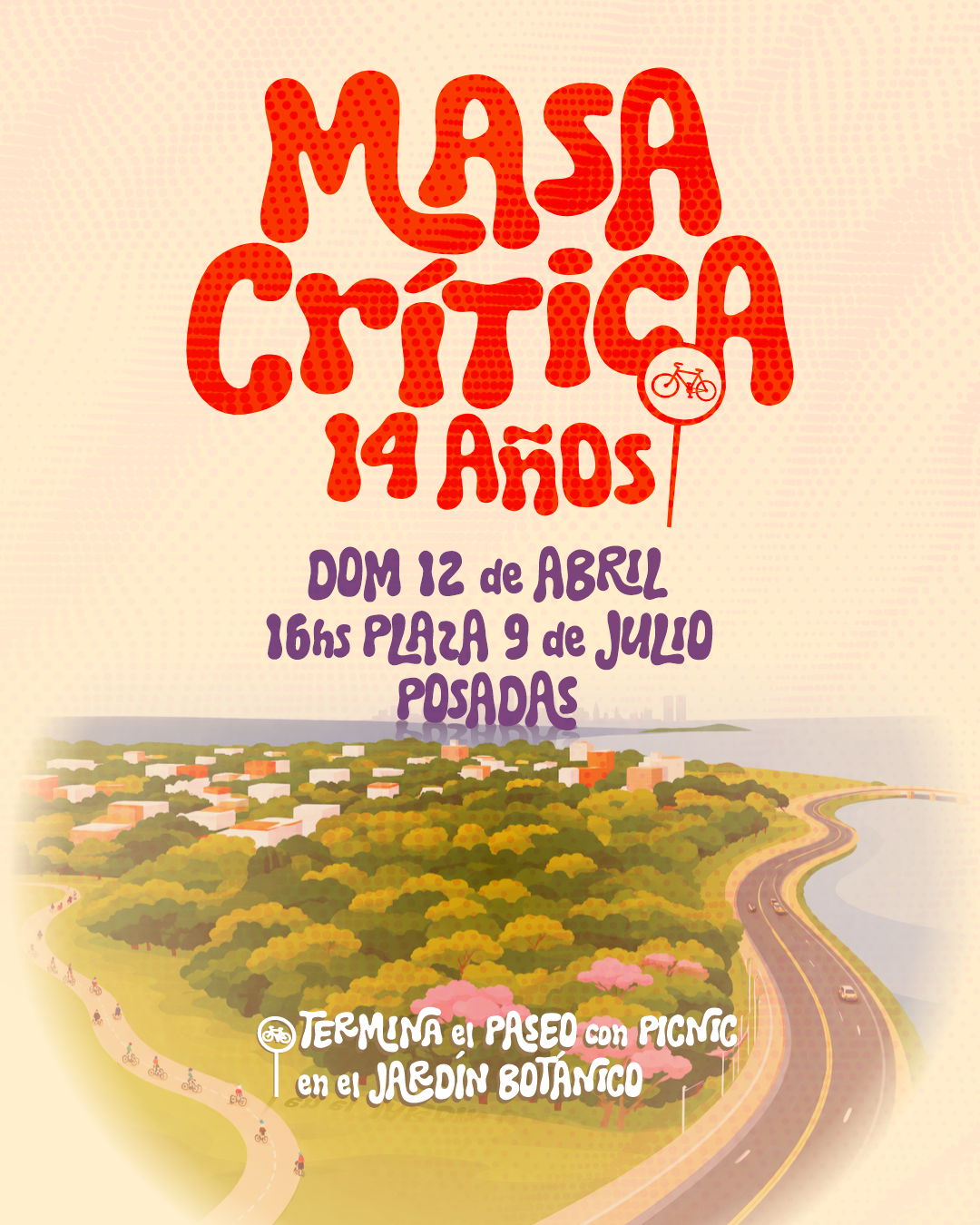 Masa Crítica celebrará 14 años de presencia en Posadas con una nueva pedaleada abierta a toda la comunidad. La convocatoria será este domingo 12 de abril a las 16 horas en la plaza 9 de Julio, desde donde partirá el recorrido urbano habitual que finalizará con un picnic a la canasta en el Jardín Botánico Alberto Roth.