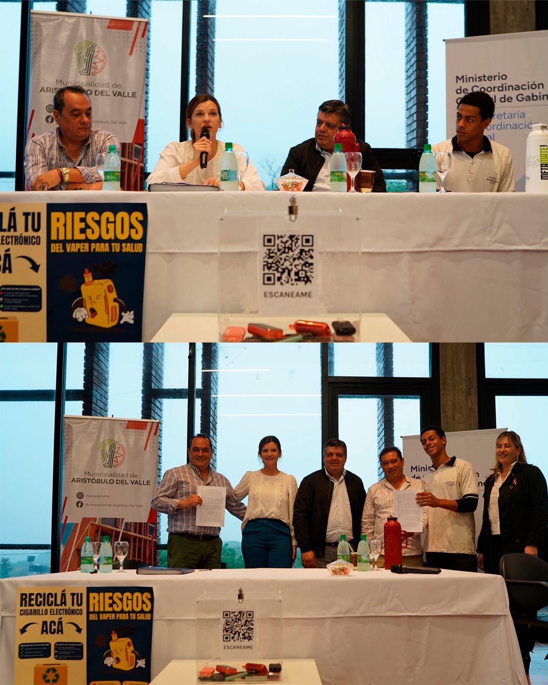 La funcionaria Micaela Gacek encabezó en Aristóbulo del Valle el lanzamiento del programa RecoVaper, una iniciativa que busca concientizar sobre el consumo de cigarrillos electrónicos, sus consecuencias en la salud y el impacto ambiental que generan sus componentes una vez descartados.