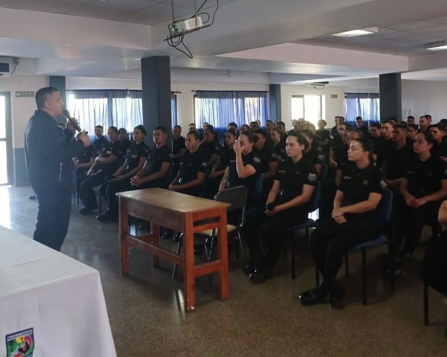 Más de 180 cadetes de II y III año de la Universidad de las Fuerzas de Seguridad de la Policía de Misiones participaron en la sensibilización sobre prevención de consumos problemáticos y adicciones a cargo del equipo interdisciplinario de la Secretaría de Estado de Prevención de Adicciones y Control de Drogas.
